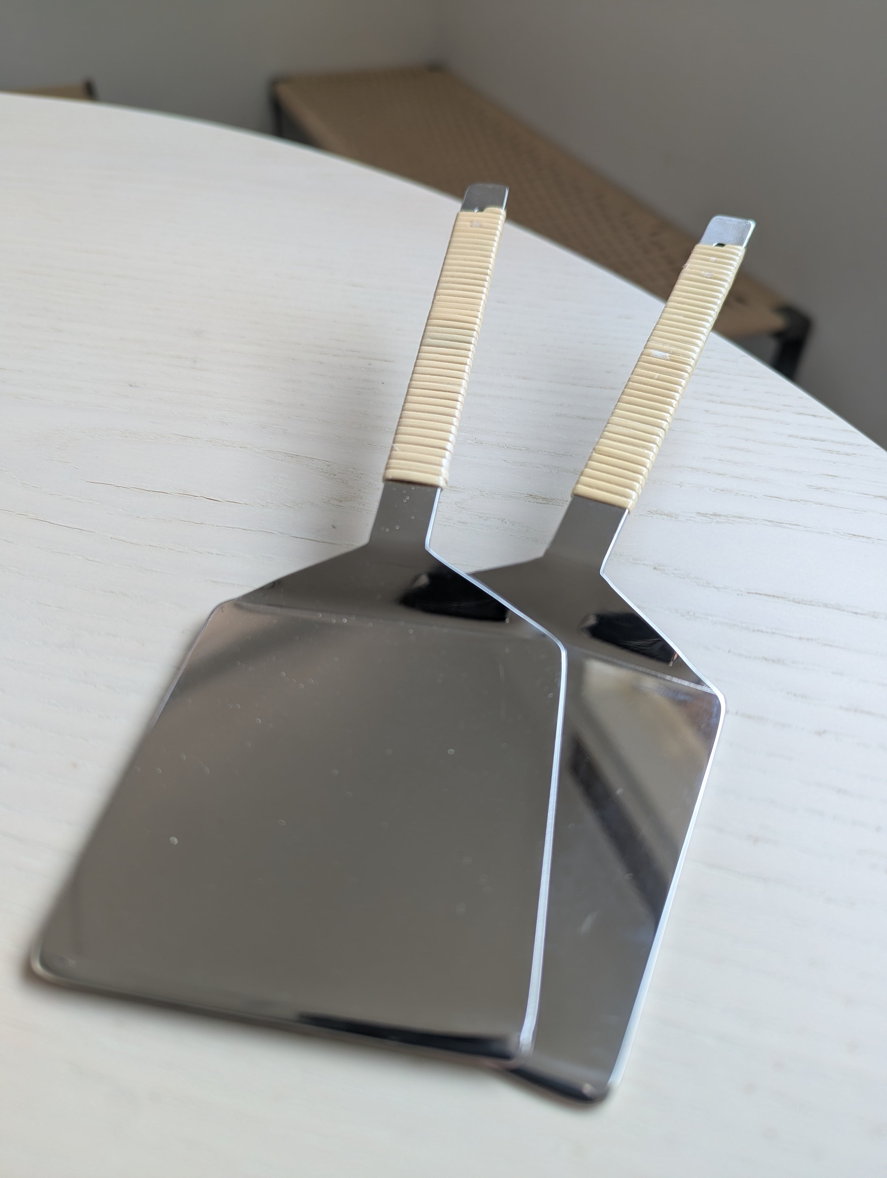板状のターナーには、同じく板状に薄くひいた平芯のラタンがしっくりとなじみました。