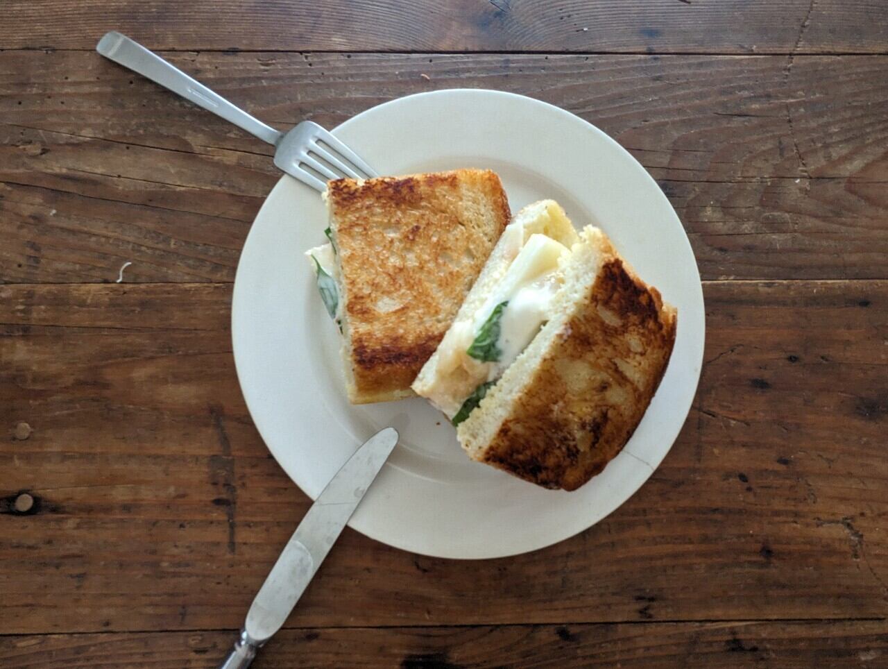 ホットサンドプレスを使ったフライパンホットサンドもカリッと美味しく出来ます。